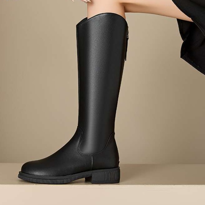 なめらかな質感のハイヒールブーツは、クラシカルな乗馬スタイルをイメージしたデザイン。