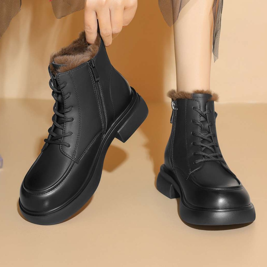 履き口のファーが上品な可愛らしさを演出するブーツ。